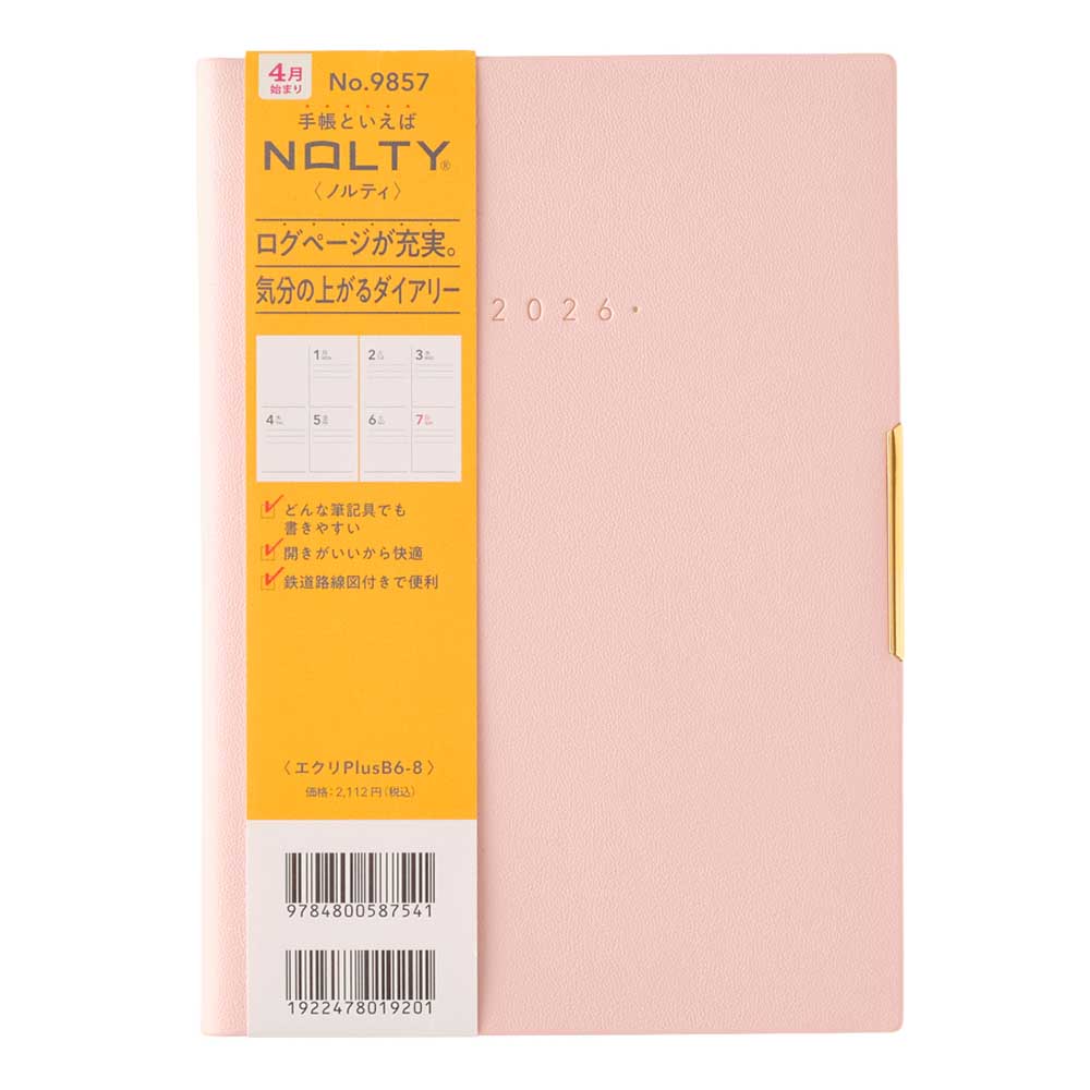 ライフログにおすすめ 2026年4月始まり 手帳 スケジュール帳 ダイアリー NOLTY(ノルティ) B6 〈月間カレンダー+週間ブロック〉 月曜始まり エクリPlus