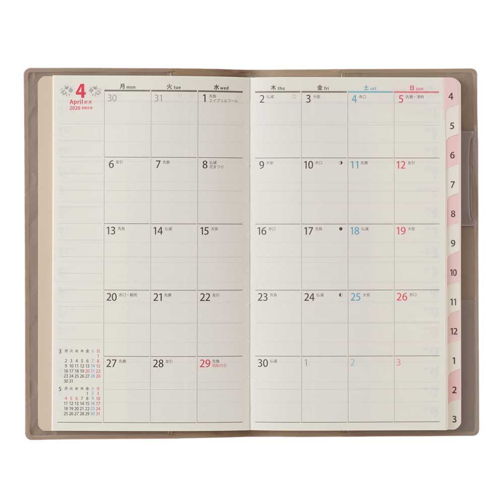 2026年4月始まり 手帳 スケジュール帳 ダイアリー NOLTY(ノルティ) B6 〈月間カレンダー + 週間レフト〉 月曜始まり インデックス付き キャレル