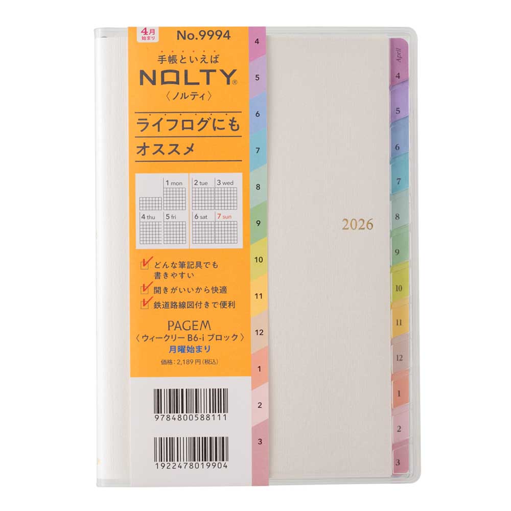 2026年4月始まり 手帳 スケジュール帳 ダイアリー NOLTY(ノルティ) B6 〈月間カレンダー + 週間レフト〉 月曜始まり インデックス付き キャレル