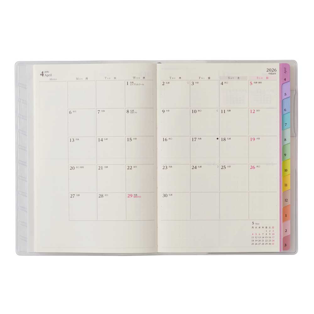 インデックス付き 2026年4月始まり 手帳 スケジュール帳 ダイアリー NOLTY(ノルティ) A5 〈月間カレンダー+週間ブロック〉 月曜始まり