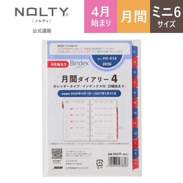 2026年1月始まり 手帳 スケジュール帳 ダイアリー NOLTY(ノルティ) | A5 〈月間カレンダー + 1頁2日〉月曜始まり メモリー (ブルー,ピンク)