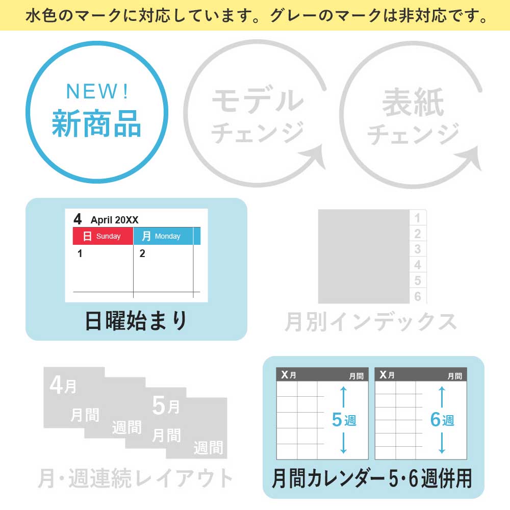 2026年1月始まり 手帳 スケジュール帳 ダイアリー NOLTY(ノルティ) | B6 〈月間カレンダー〉日曜始まり インデックス B6-i