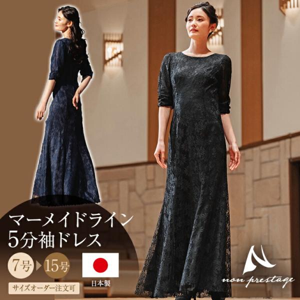 マザーズドレス 母親 正礼装 花嫁 結婚式 レース マーメイドライン 5分袖 ドレス フォーマル 演奏会 黒 正礼装 50代 40代 60代 着痩せ 体型カバー op3735