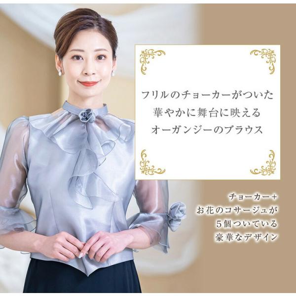 フリルチョーカー オーガンジー 5分袖ブラウス (商品番号: bl676)