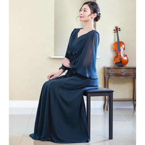 マザードレス 結婚式 母親 ドレス 袖あり 体型カバー ロングドレス フォーマル ドレス 演奏会用ドレス シフォン op3528