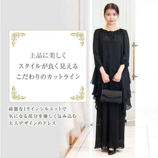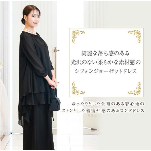 マザーズドレス 結婚式 母親 親族 ドレス ロングドレス フォーマル ブラック ロング 演奏会 シフォンジョーゼット ワンピース 花嫁の母 40代 50代 60代 (op3745)
