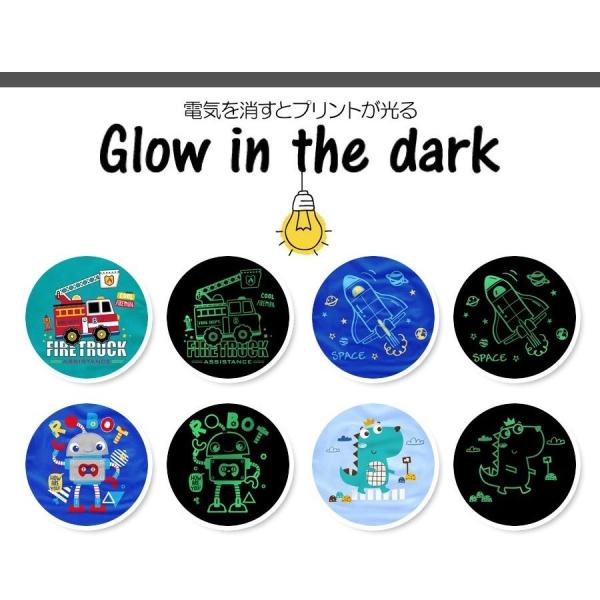 子供に大人気!蓄光プリントが暗闇で光るよ。