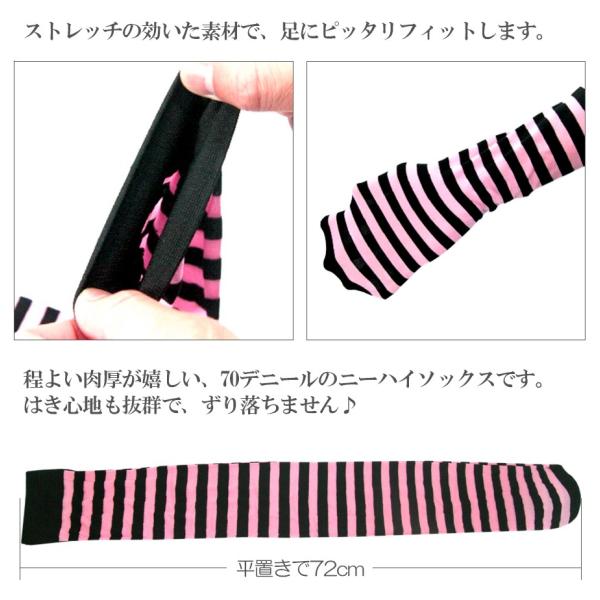 カラフルボーダー ニーハイソックス 70デニール ボーダー 靴下 レッグアベニュー 6005 即納