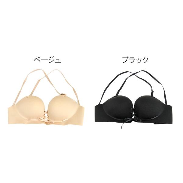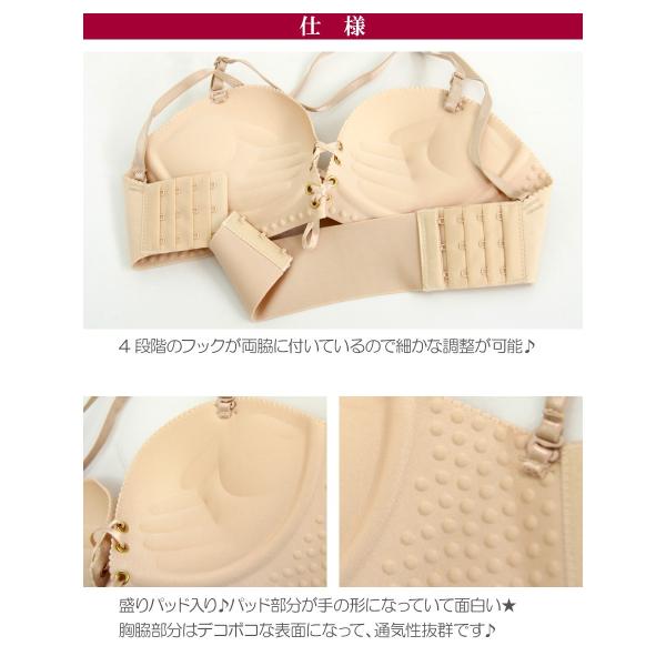 在庫処分 盛りブラ ヌードブラ ブラジャー クロスバック ホールド 編み上げ谷間メイクブラ メール便