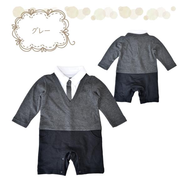 在庫処分 ベビー フォーマル 男の子 ロンパース スーツ ネクタイ 長袖 カバーオール ベビー 赤ちゃん 子供 こども 子ども メール便送料無料