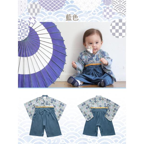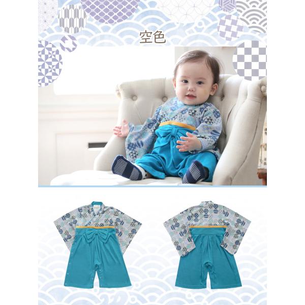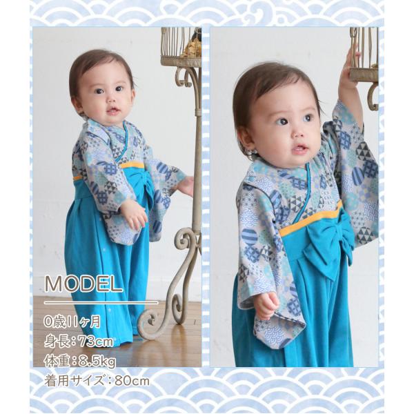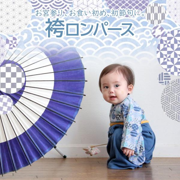 見た目はまるで和装の袴なのに、ロンパースだからお着替えもおむつ替えも楽々♪