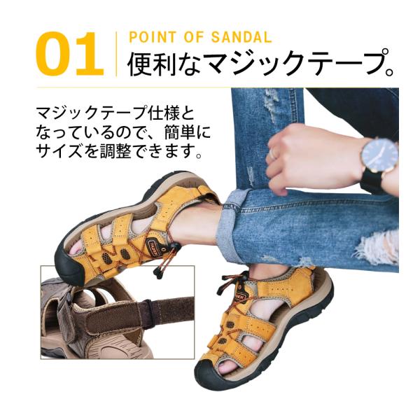 レザー サンダル メンズ 牛革 スポーツ アウトドア 幅広 通気性 カジュアル