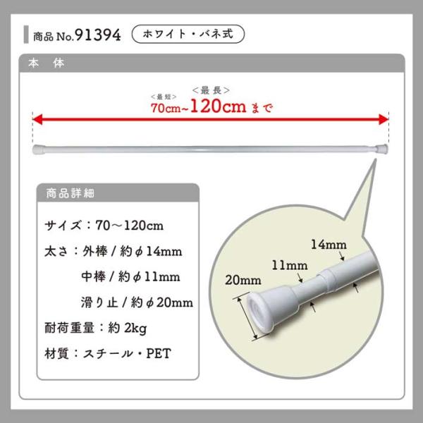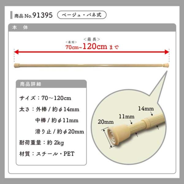 つっぱり棒 のれん棒 突っ張り棒 70〜120cm φ14mm 白 茶色 ベージュ(91394 91395 91396)