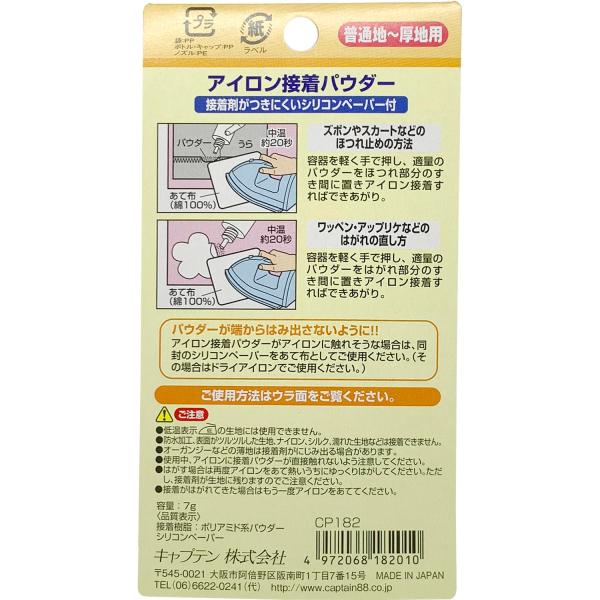 CAPTAIN88 キャプテン 簡単補修シリーズ アイロン接着パウダー 粉末タイプ 普通地~厚地用 7g アイロン接着 CP182