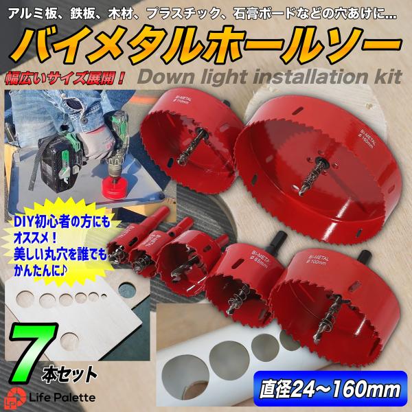 ライフパレット バイメタル ホールソー ホルソー セット 穴あけ 切削 工具 7本セット 24mm 30mm 50mm 65mm 100mm 110m
