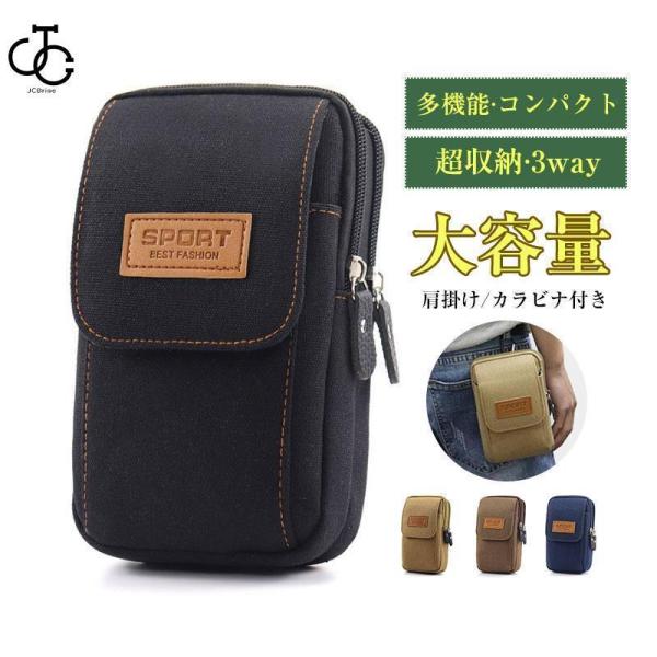 ベルトバッグ ベルトポーチ スマホポーチ ショルダーバッグ メンズ レディース キャンバス カラビナ付き 多機能 大容量 肩掛け おしゃれ