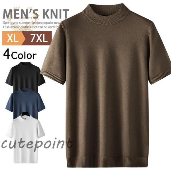 モックネック ニット 半袖 ハイネック ゴルフウェア メンズ 半袖ニット ニットTシャツ サマーニット インナー 父の日 春夏