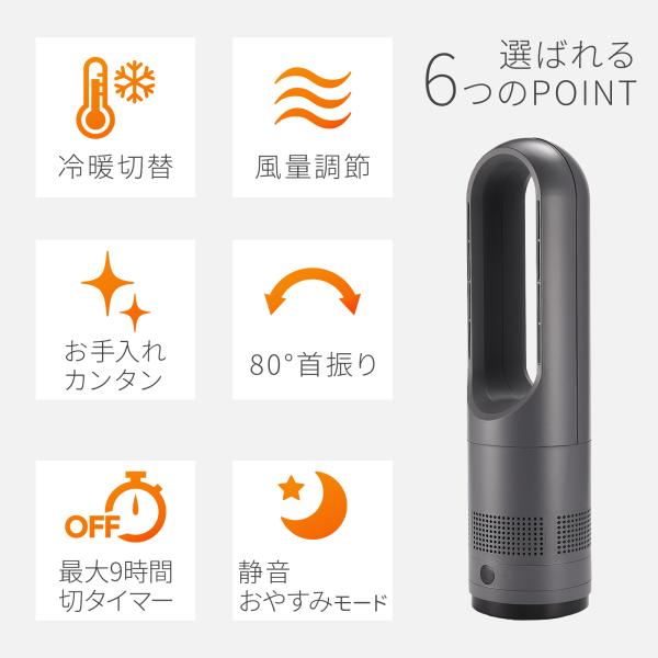 冷暖兼用 タワーファン 冷暖両用 小型 コンパクト スリム 節電 省エネ 静音 シンプル リビング 脱衣所 オフィス タイマー付き リモコン付き 一年保証