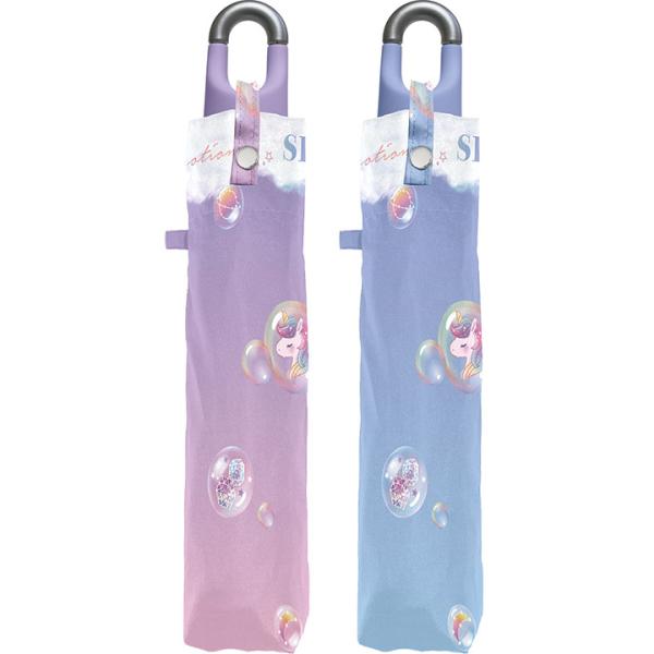 折りたたみ傘 かわいい子供用 軽量 キッズカラビナ付 カラフルマリン 透明窓 子供用記念品