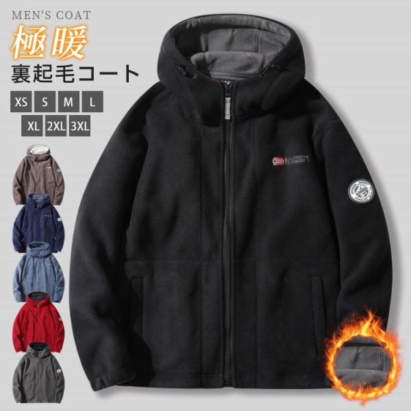 メンズ ポーラー フリース ジャケット フード付き ロッカー フリース フルジップジャケット 暖かい アウター アウトドア 保温 防寒 防風 秋 冬服