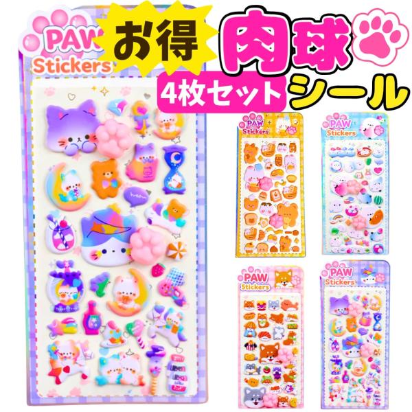【お得な4枚セット】肉球 ぷにぷに シール 動物 スクイーズ にくきゅう どうぶつ おしり マシュマロ いぬ ねこ コーギー シマエナガ くま とり セール