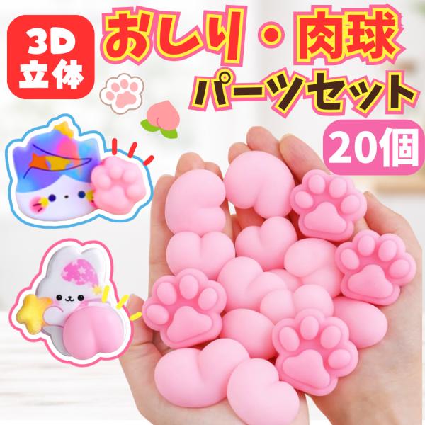 おしりシール 肉球シール【20個セット】 パーツ 粘着なし ぷにぷに 立体 デコレーション お尻シール風 かわいい 手帳 シール帳 スマホ DIY デコ素材 ピンク