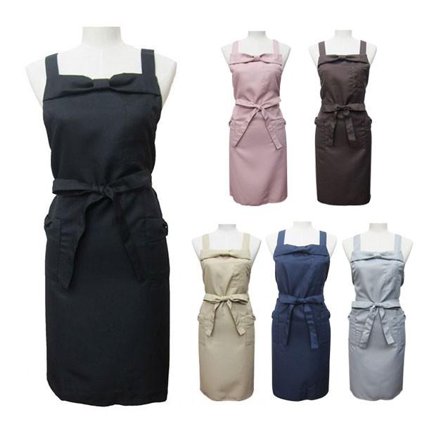 エプロン リボン付 たすき掛け 全6色 身丈80×身幅100cm 黒 おしゃれ ワークエプロン 作業用エプロン 業務用エプロン ネイルサロン エステサロン まつ毛サロン