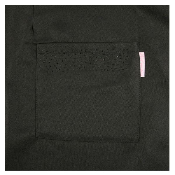 しわになりにくい上質な素材のブラックストーン付きエプロン