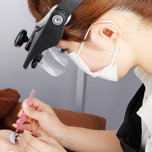 まつげエクステの手元の細かい作業に便利な、拡大集光ライト付きヘッドルーペです。