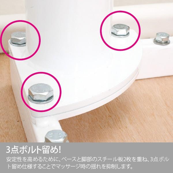 耐久性・耐圧性を高める為に、厚手のベース板に太いスチールフレームを組むことで強化したベッドです。差し込み式の脚部ではなく3点ボルト止めをし、鉄板を2枚重ねて止めることにより安定性が格段にアップしたモデルになっています。脚部の取り付け位置も少し内側に設置。