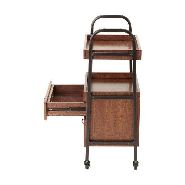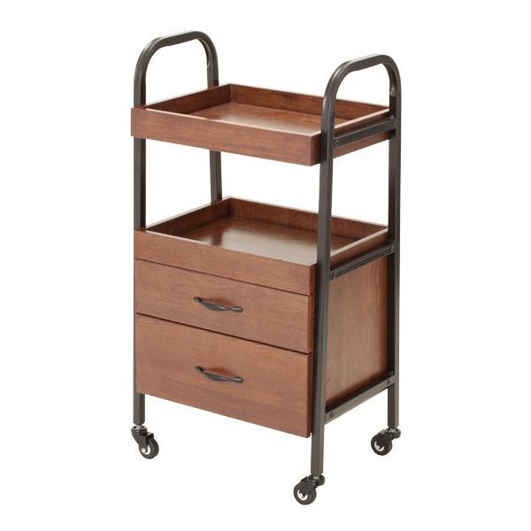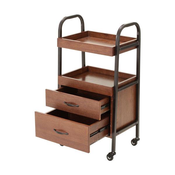 存在感のある引出しの付いた高級ワゴンが新登場!サイズ違いで2段の木製引出しがついて、ウッド×スチールのシンプルデザインにも関わらず洗練された高級感を醸し出しています。使い込むほどに味が出てくるウッドワゴン!オススメです。