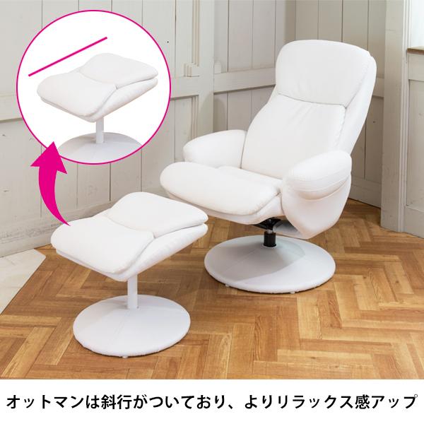 人気のオットマン付きタイプ。オットマンも2ブロックのふっくら使用になっています。お手入れラクラク PU素材。フルフラットにはなりませんがゆったりと座れる120〜140°調整可能。オットマンは斜行がついておりよりリラックス感アップ。