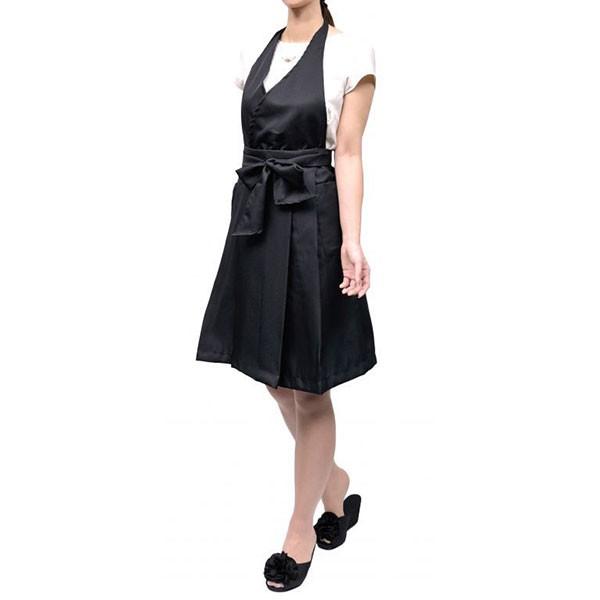エプロン ドレス ワンピース 首掛け リボン ブラック 身丈93cm×身幅90cm ユニフォーム 黒 おしゃれ ワークエプロン 作業用エプロン
