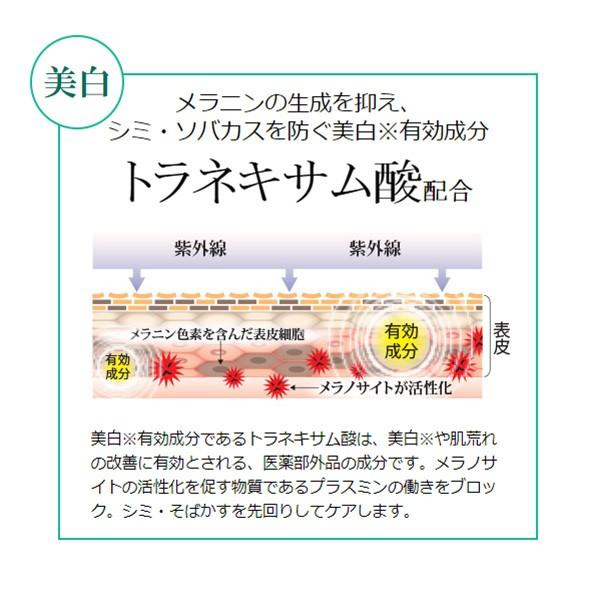 SPF50+ PA++++の最高値のスペックを誇る薬用UVクリーム。白浮きしにくく、なめらかなテクスチャーで、厚塗りにならずお肌になじみます。水や汗に強いので、日常はもちろん、夏のレジャーなどでも活躍します。有効成分に:トラネキサム酸(美白)、グリチルレチン酸ステアリル(抗炎症)を配合。合成着色料、鉱物油、香料、パラベン、アルコールフリーでお肌に優しい処方です。