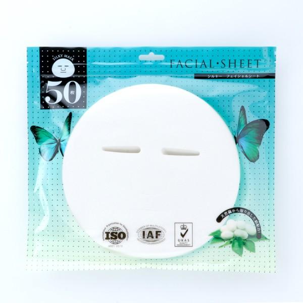 フェイスシート フェイシャルシート シルキー 50枚入 フェイスマスク フェイシャルマスク シートマスク ローションマスク ドライタイプ エステサロン エステ用品 中国製 シルク 超ソフト 保湿シート チャック付き袋入り