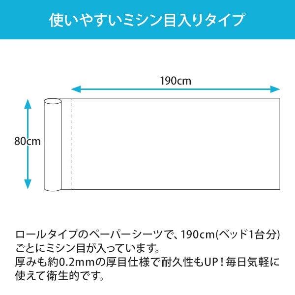 1枚のサイズは幅80cm・長さ190cmあるのでしっかりベッドをカバーします。シーツの厚みも約0.20mmの厚目仕様で耐久性もUP。毎日気軽に使えて衛生的なペーパーシーツです。