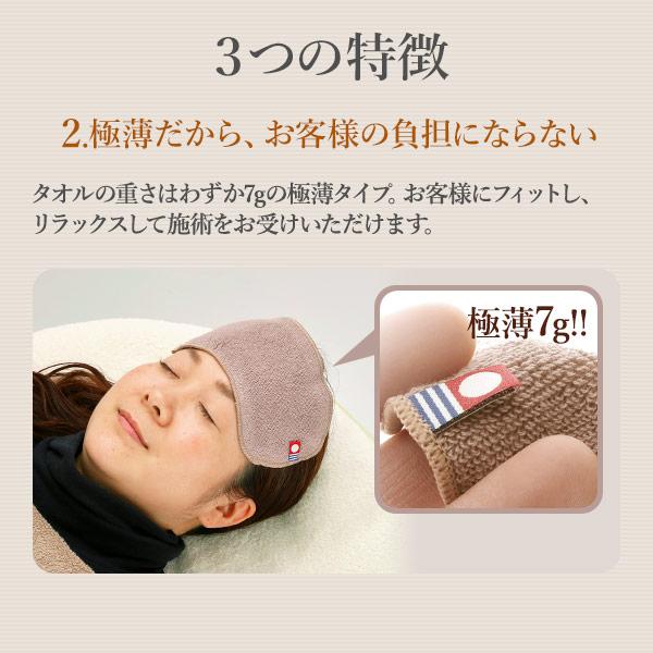 施術者とお客様の肌が直接触れないので衛生的かつ、お客様のお化粧崩れの心配がありません。また、薄手仕様なので、おでこの上にのせた時の違和感もなく、肌に跡がつきません。