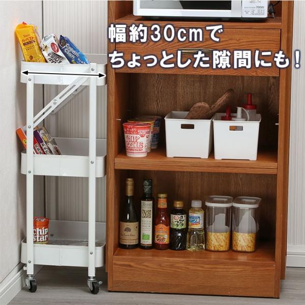 折りたたみ ワゴン キャスター付き 3段 キッチンワゴン トローリー 業務用 エステ サロン ネイル 美容室 収納 隙間収納 ラック スリム マルチ サイド メッシュ底