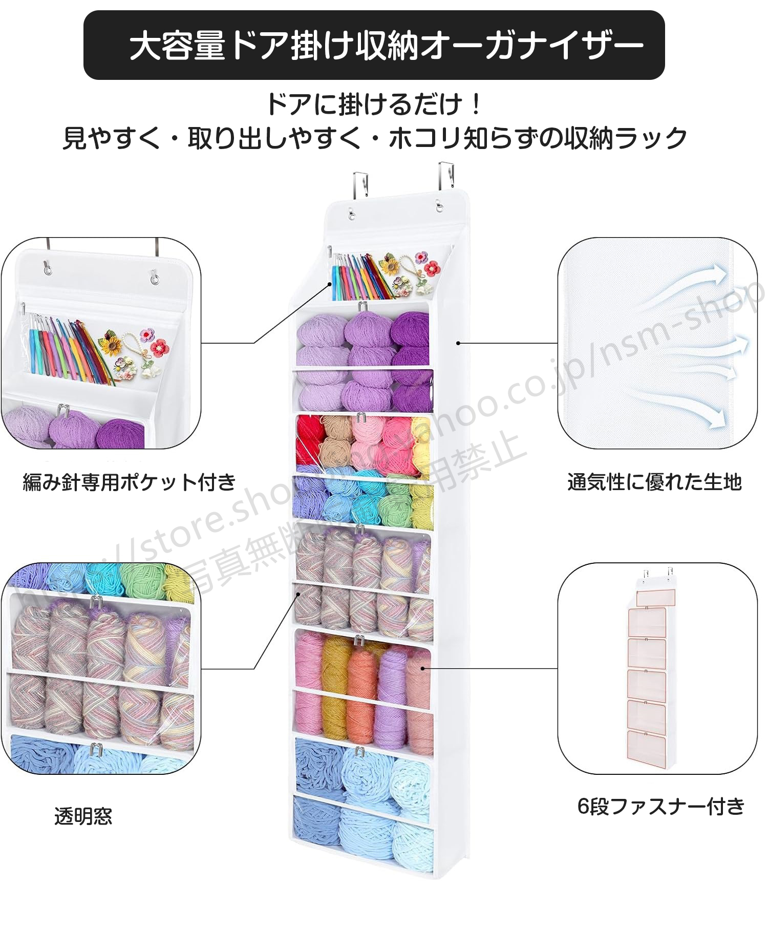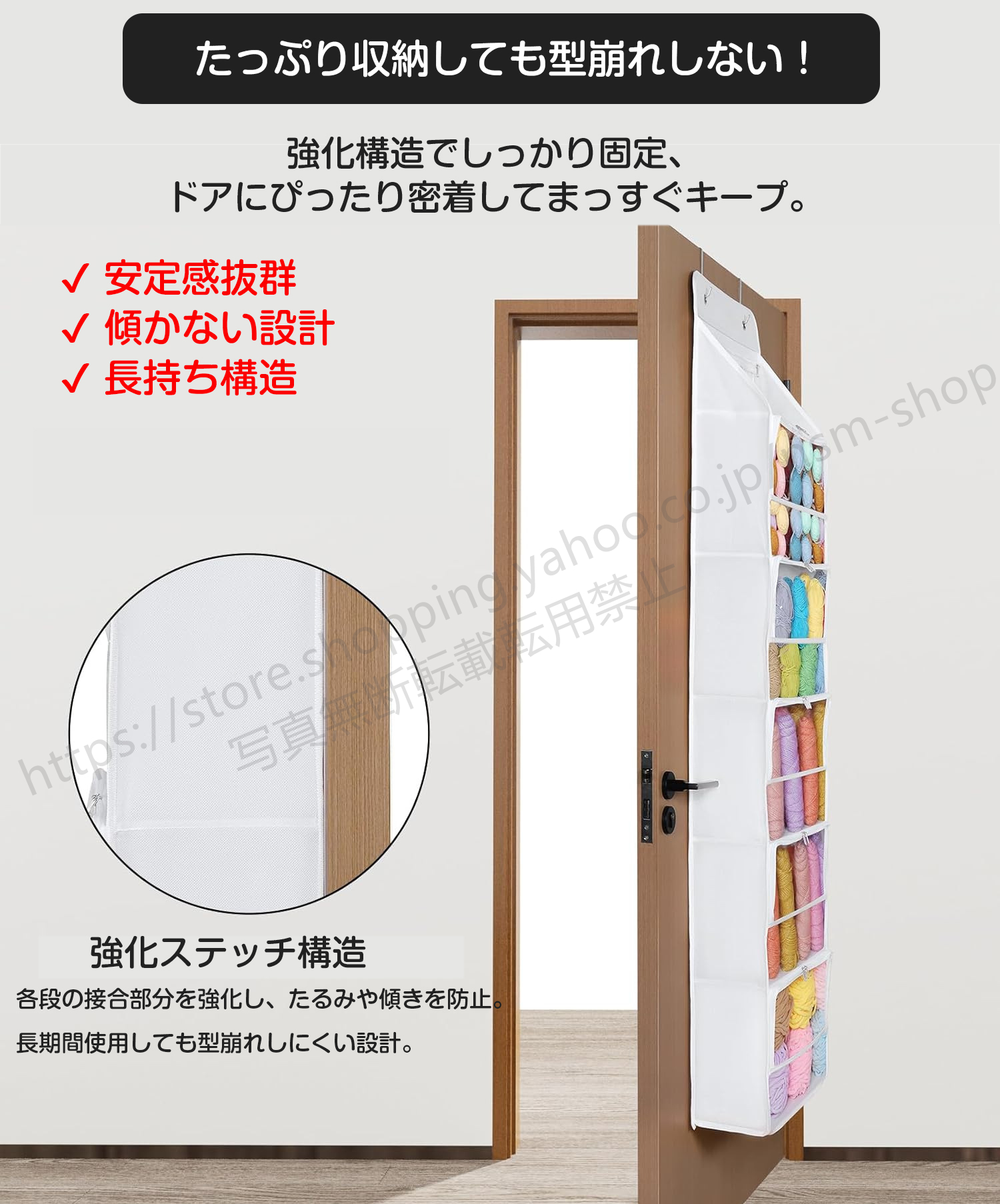 ドアに掛けるだけ!通気性抜群の大容量吊り下げ収納。