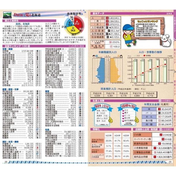 初婚年齢、離婚率、貯蓄額、外食費、食事に使う時間、旅行に行く人の割合、国別外国人宿泊者数、大学進学率、月額給与、求人倍率、病院数、博物館数・・・・・・130項目を都道府県別にランキング。観光地、郷土料理、ご当地調味料、県民性など、ビジネスの場でも盛り上がる47都道府県の話の種が盛りだくさんです。