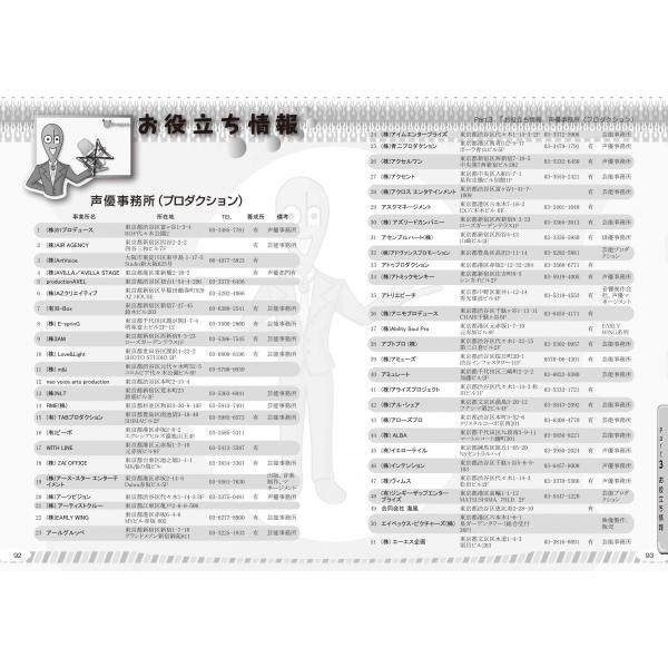 (1)声優ってどんな職業?/(2)声優になるには何をしたらいいの?/(3)声優になるのにいくらかかるの?/(4)声優の収入は?/(5)オーディションに受からな〜い/(6)声優に向いている人向いていない人/(7)スクールいろいろ/(8)プロダクション(事務所)ってどういうところ?/(9)声優デビュー後生き残るためには?/(10)声優業界の今後