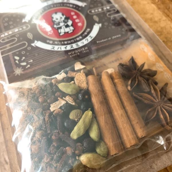 クローブ、シナモン、ほうじ茶、スターアニス、カルダモン、ジュニパーベリー、レモンピール、ブラックペッパー、ナツメグ