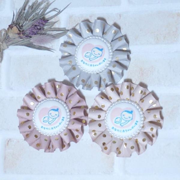 マタニティマーク ロゼット リボン ドット 水玉 かわいい ちびすけ マタニティロゼット ハンドメイド CR19-5