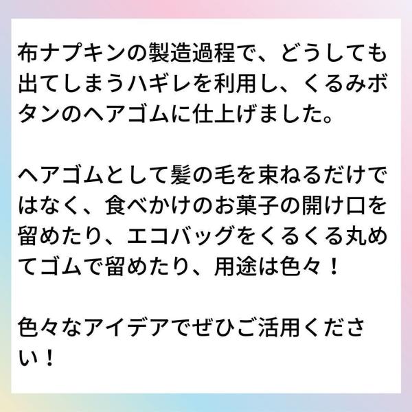 布ナプキンの製造過程で出てしまう、廃棄される予定のハギレを使いアップサイクル!