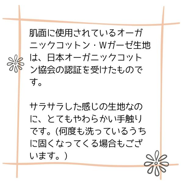 肌にふれる部分は、肌触りの良いオーガニックコットンのWガーゼ生地。