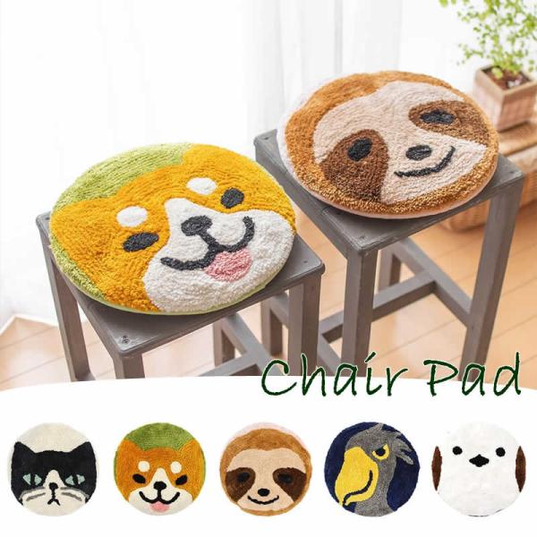 チェアパッド クッション アニマル 動物 ネコ イヌ ナマケモノ ハシビロコウ シマエナガ 鳥 円形 座布団 椅子 ベンチ シート アジアン雑貨 インテリア