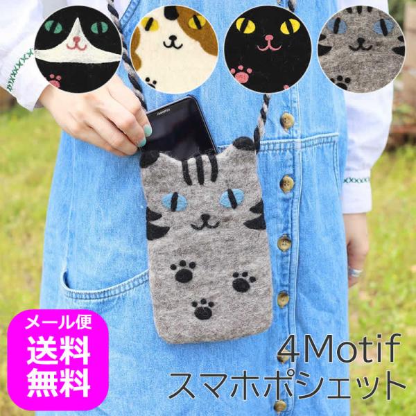 スマホポシェット アニマル スマホポーチ スマホショルダー ねこ ネコ 猫 ポシェット レディース 斜めがけ 大人 かわいい アジアン雑貨