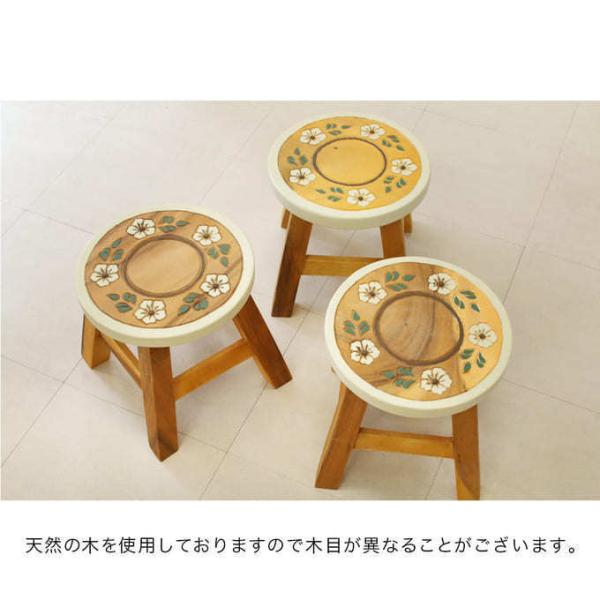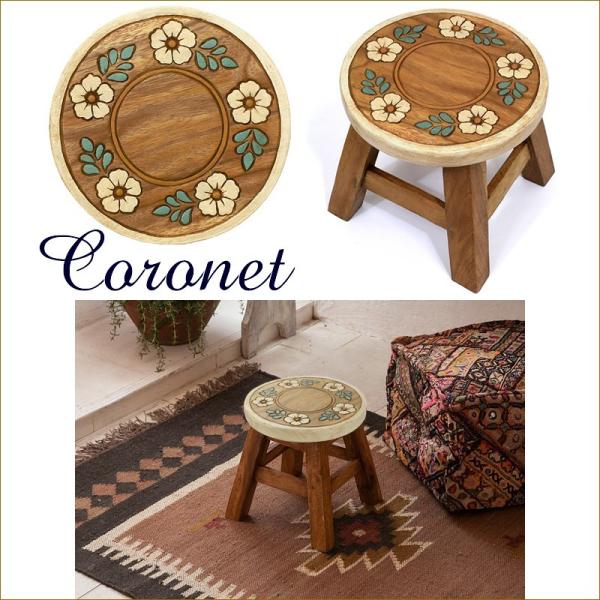 ラウンドスツール カロチャフラワー ウッドスツール 木製 スツール おしゃれ フラワー 刺繍柄 丸 椅子 いす イス ミニスツール 玄関 花台 木 アジアン雑貨