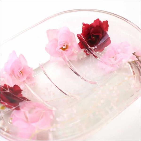 水に浮かんだお花が華やかなアクリル製のソープトレー。