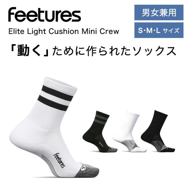 フィーチャーズ ソックス 靴下 ミニクルー丈 足首丈 スポーツソックス Feetures Elite Light Cushion Mini Crew 着圧 サポート ランニング 【メール便2足まで】